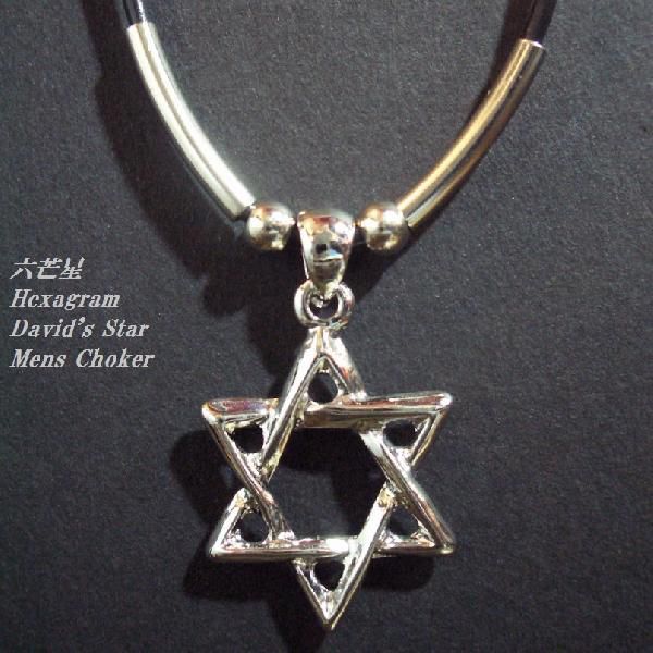 六芒星チョーカー/ヘキサグラム/ダビデの星/メンズチョーカー/スターネックレス/M-719