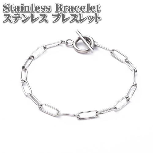 ステンレスブレスレット ペーパークリップチェーンブレスレット トグル留め金付き 18.5cm マンテル ステンレス チェーン ブレスレット シルバー