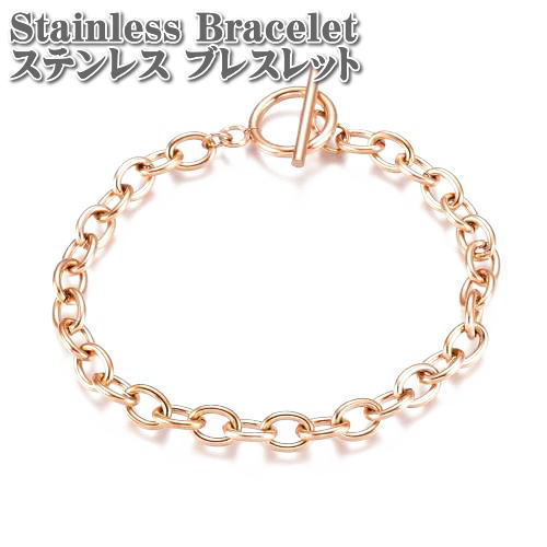 ステンレスブレスレット トグル留め金付き 19.4cm マンテル ステンレス チェーン ブレスレット ピンクゴールド アズキチェーン