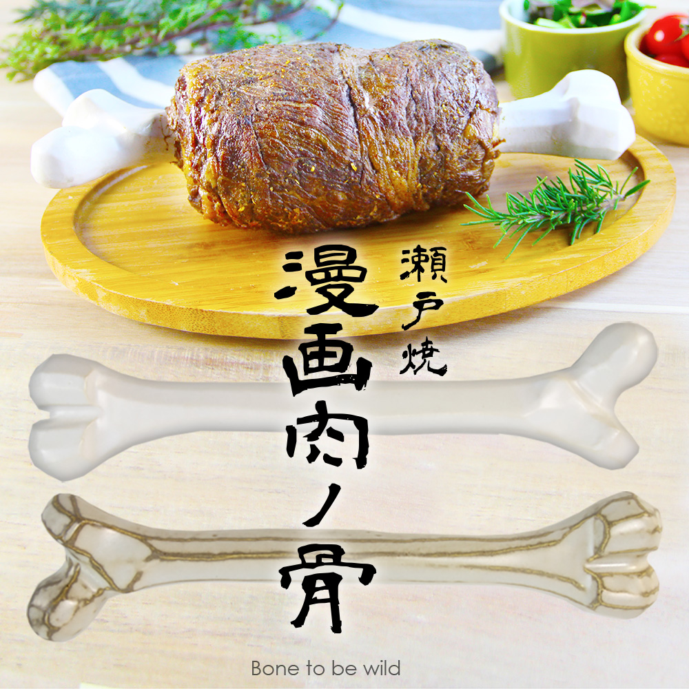 テレビで、漫画で、あの主人公が豪快にかぶりついていた『あの肉』が再現できる!耐熱陶器製骨型食器です。