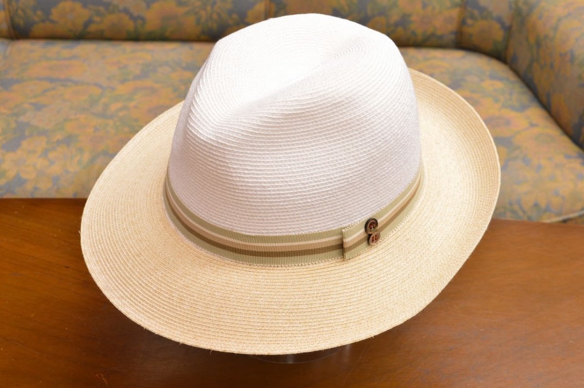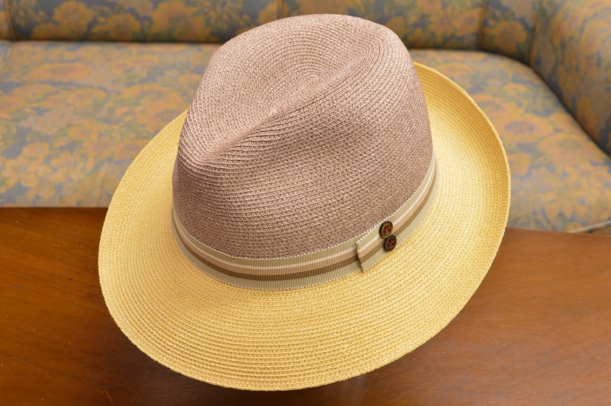 Grevi グレヴィ マニラ麻100% バイカラー センターデント マニッシュ ハット つば約6.5〜7cm 約57.5cm