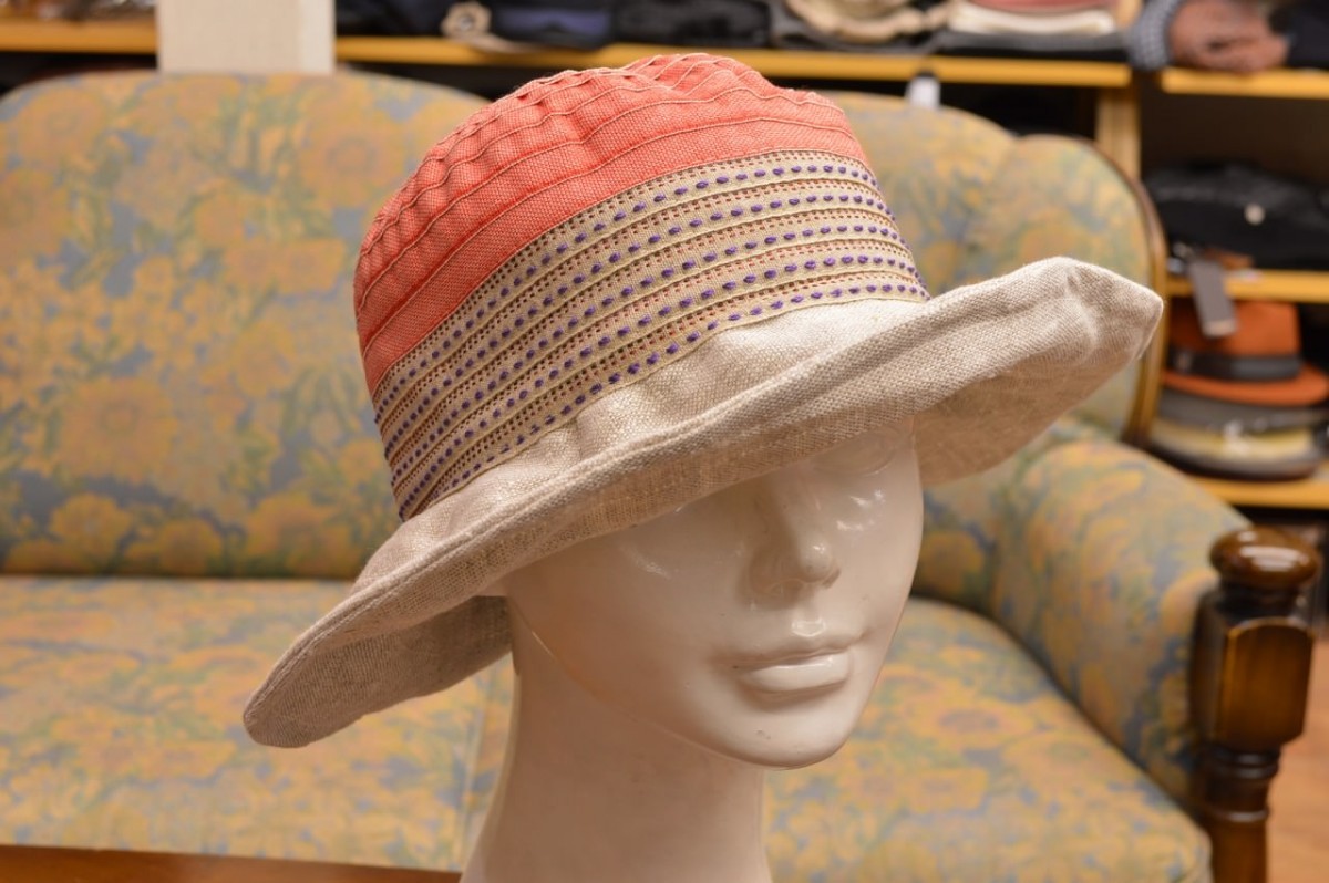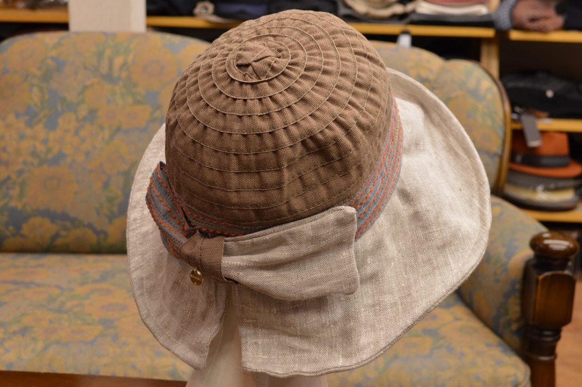 Kauteli カウテリ レディース ハット 春 夏 麻コットン コンビ ポケッタブルワイヤークロシェ 折りたたみ可 つば約7〜9cm 約57cm