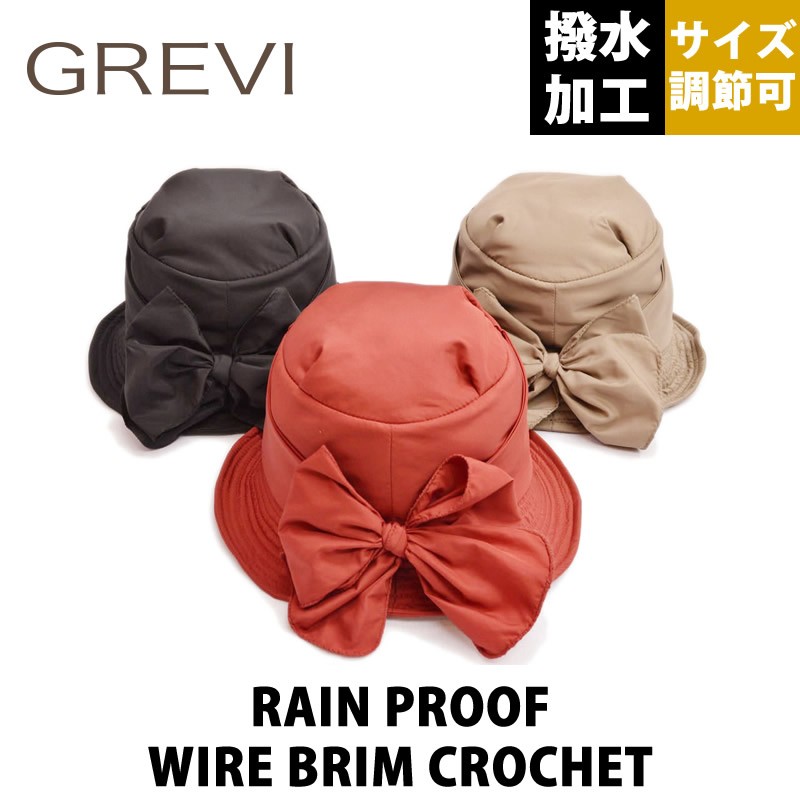 Grevi グレヴィ レディース レインプルーフ 撥水加工 バックリボンワイヤーブリムクロッシェ 内部フリース 折りたたみ サイズ調節可 約55〜59
