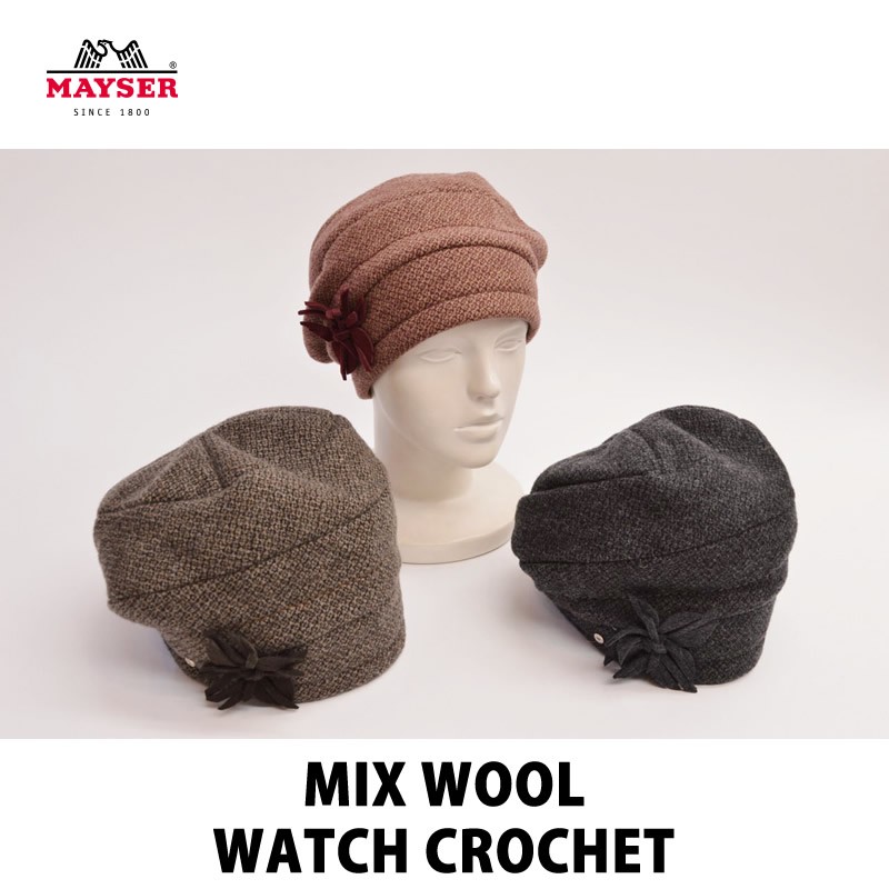 創業1800年、ドイツの名門老舗、「MAYSER マイゼル マイセル マイサーと呼ばれる方もおられます。」ブランドからの、ミックスウール ワッチクロッシェ(ドライクリーニング可)です。