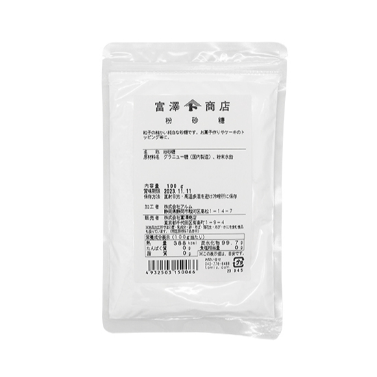 粒子の細かい純白な砂糖です。お菓子作りやケーキのトッピング等に。