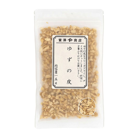 ゆずの皮をフリーズドライし、ダイス状にカットしました。料理に少量ふりかけてお使い下さい。