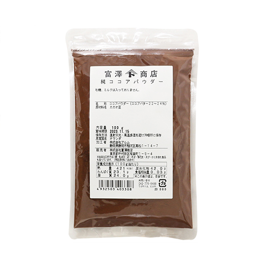 脂肪22-24% ココアパウダー100%です。砂糖、ミルクは入っておりません。