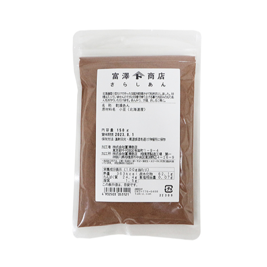 北海道産小豆だけで作った生餡を乾燥させて粉末状にしました。砂糖は入っていませんので水と砂糖で練り上げる事でお好みのねりあんをお作りいただけます。あんみつ、大福、おしるこ等に。