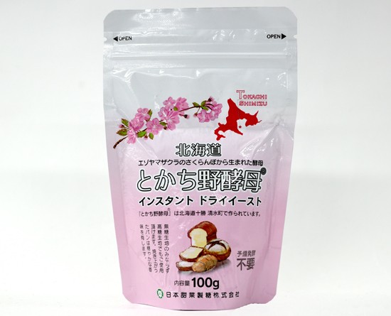 予備発酵不要なインスタントタイプです。エゾヤマザクラのさくらんぼから生まれた北海道十勝産の酵母です。食パンから菓子パンまで幅広く使えます。