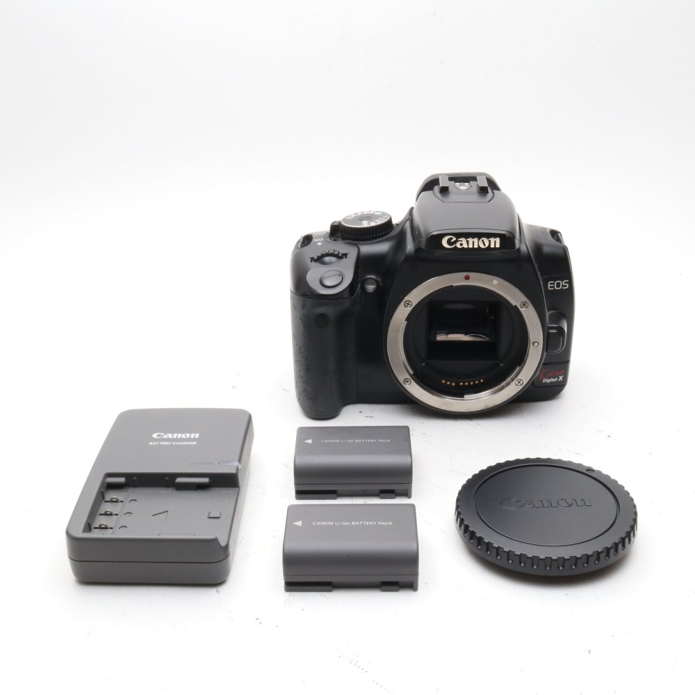 商品の説明 (新品の場合) | 1010万画素・9点AF・2.5型液晶・CFカード・小型軽量・PictBridge Canon Kiss デジタル Xは誰にでも使いやすい操作性と小型軽量ボディに、10M CMOSセンサーに高性能映像エンジンDIGIC IIを搭載。初心者からハイアマチュアまで幅広い撮影シーンに対応します。 こんな方にオススメ はじめての一眼レフ。でも長く使える高性能とカッコよいデザインのものが欲しい せっかく購入するカメラだから、小型でいつでも持ち歩ける大きさのものが欲しい 難しいことは解らないけど、とにかくかって間違いのないものをススメてほしい。 「Kiss」ならではの小型軽量ボディ 本体重量わずか約510グラム。標準ズームレンズとバッテリーを装着した場合でも約743グラムを実現。手軽に持ち運べる、軽量コンパクトな高性能デジタル一眼レフ。 1000万画素CMOSセンサーと高性能映像エンジンDIGIC II 豊かな階調表現と高精細で自然な色再現。最高1010万画素の大型CMOSセンサーと高性能映像エンジンDIGIC IIを搭載。DIGIC IIは先進の画像処理技術で大容量データも高速処理。 イメージ通りの色調に仕上げるピクチャースタイル 6種類のピクチャースタイルは、フィルムを選ぶような感覚で「スタンダード」「ポートレート」「風景」「ニュートラル」「忠実設定」「モノクロ」と多彩な写真表現ができる。もちろんユーザ設定も可能。 簡単から応用まで選択できる大型モードダイヤル 撮影モードの選択は撮りたいシーンにあわせてダイヤルを回すだけ。簡単撮影ゾーンと応用撮影ゾーンから目的に合わせたモードが選べる。 上位機種と同じ高精度・高速9点AF 上位機種に採用されている高精度・高速9点AFを採用。被写体がファインダー中央にいなくても、全9点のフォーカスエリアで精確かつ瞬時に焦点を合わせる。 総合的・効果的なセンサーダスト対策を採用 レンズ交換などで入り込むゴミ・ホコリには3段階のシステムで対応。「ださない/付けない/残さない」をテーマに総合的かつ効果的なダスト対策を図っている。 商品紹介 1010万画素・APS-CサイズCMOS、秒間3コマ連写、バッファ27枚。KissデジタルX(ブラック)本体、バッテリーパックNB-2LH、バッテリーチャージャーCB-2LW、インターフェースケーブルIFC-400PCU、ビデオケーブル、ワイドストラップEW-100DB II、EOSデジタルソリューションディスク、ソフトウエア使用説明書CD |