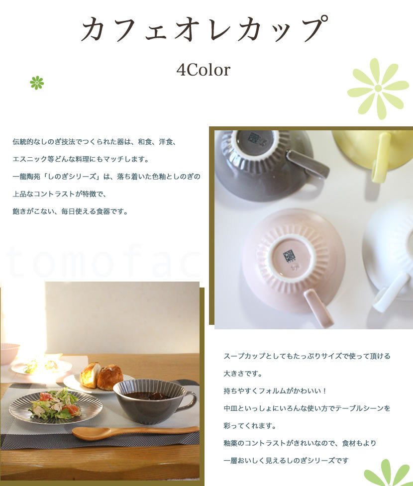 【一龍陶苑】【しのぎ】【カフェオレカップ】【波佐見焼】【tomofac】和洋食器 ナチュラル 北欧 白マット グレー ピンク 黄色 大 小 ギフト セット プレゼント