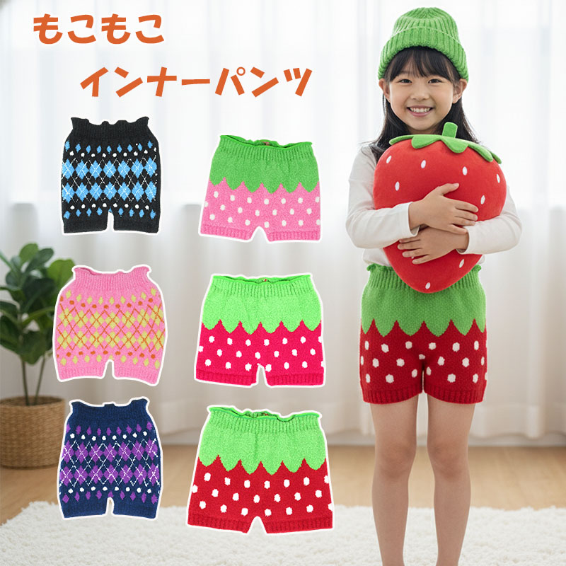 キッズ いちご ニット パンツ アーガイル 防寒 あったか 暖かい 温かい 毛糸 もこもこ ぽかぽか 腹巻 かわいい 日本製 国産 子供 キッズ 女の子 男の子