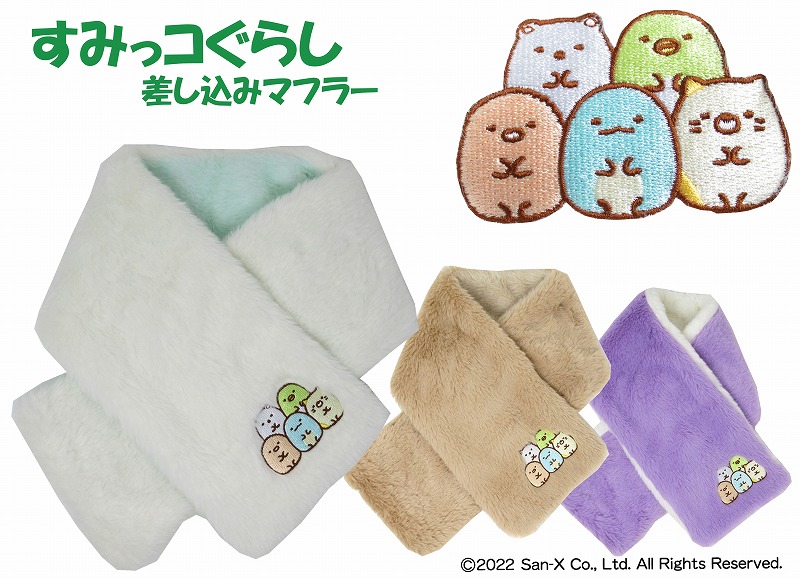 すみっコぐらし マフラー フリーサイズ 裏ループマフラー 防寒 あったか 温かい 秋冬 可愛い かわいい キャラクター おすすめ 子供 子ども キッズ 女の子 男の子