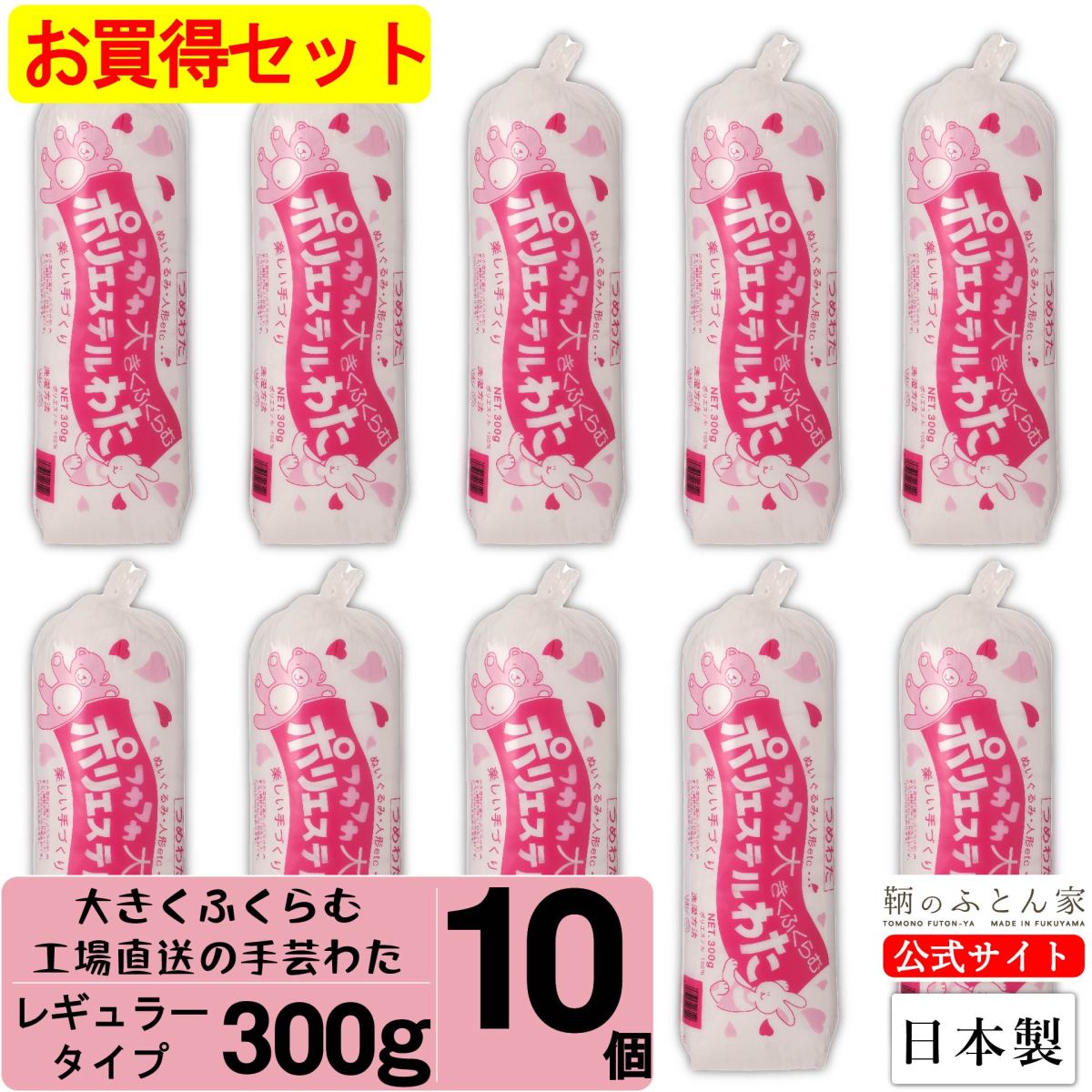 手芸綿 300g 日本製 レギュラー 10個 補充用 シートタイプ ぬいぐるみ クッション 手芸わた