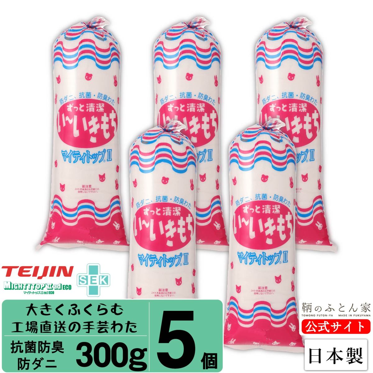 手芸綿 300g 日本製 抗菌 防臭 防ダニ 5 個 テイジン マイティトップ II 補充用 シートタイプ ぬいぐるみ クッション 手芸わた