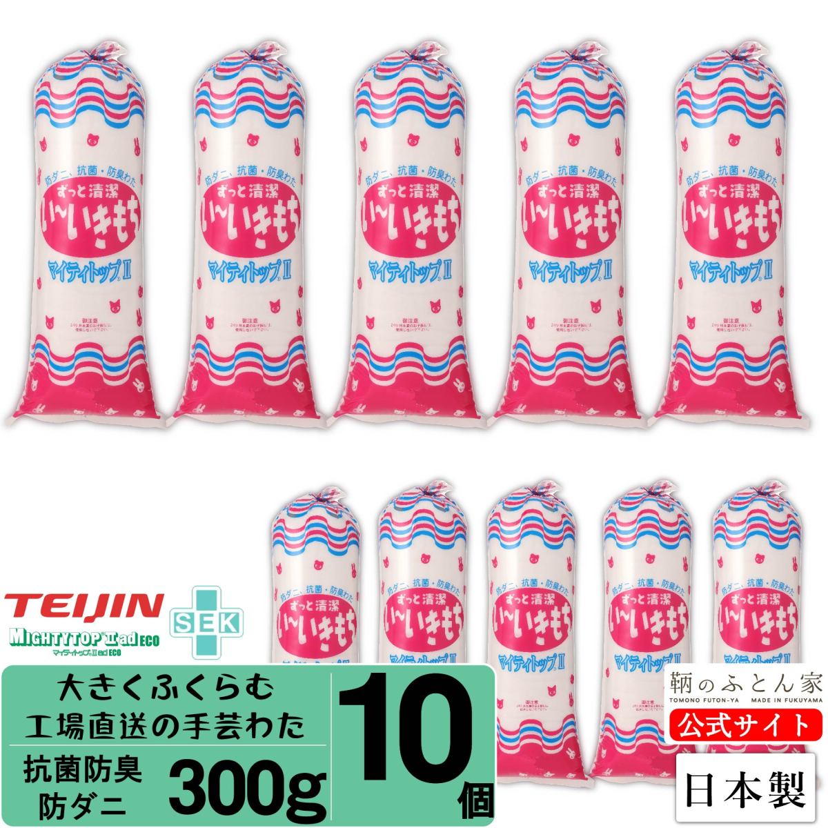 手芸綿 300g 日本製 抗菌 防臭 防ダニ10個 テイジン マイティトップ II 補充用 シートタイプ ぬいぐるみ クッション 手芸わた