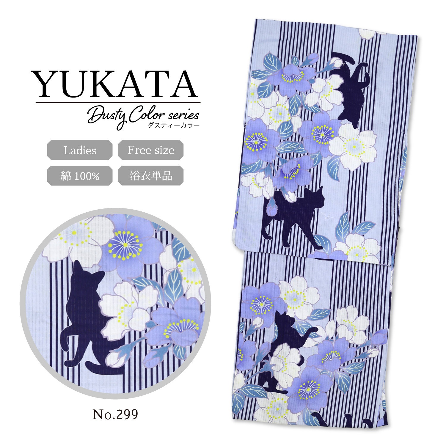 猫雑貨 浴衣 ゆかた 縞柄と桜 猫柄 フリーサイズ お祭り