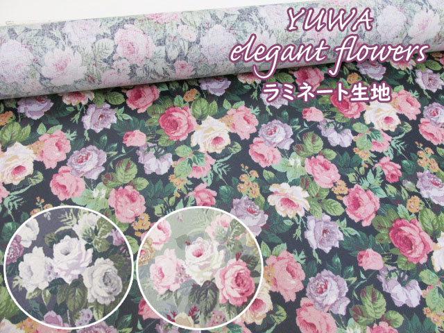 YUWA 定番 エレガントフラワーズ 花柄 コットンリネンキャンバス生地 ラミネート つや消し