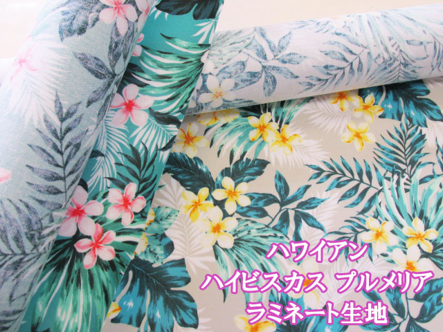 ハワイアン ハイビスカス プルメリア フラワー・花柄 オックス生地 ラミネート つや消し