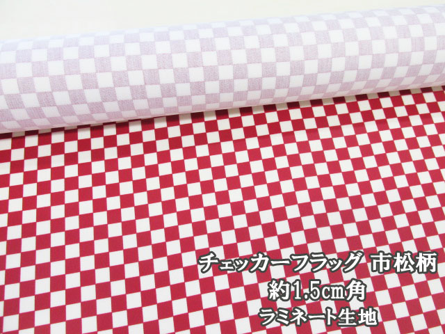 チェッカーフラッグ 市松 チェック柄 ツイル生地 (赤×生成)1.5cm角 ラミネート つや消し