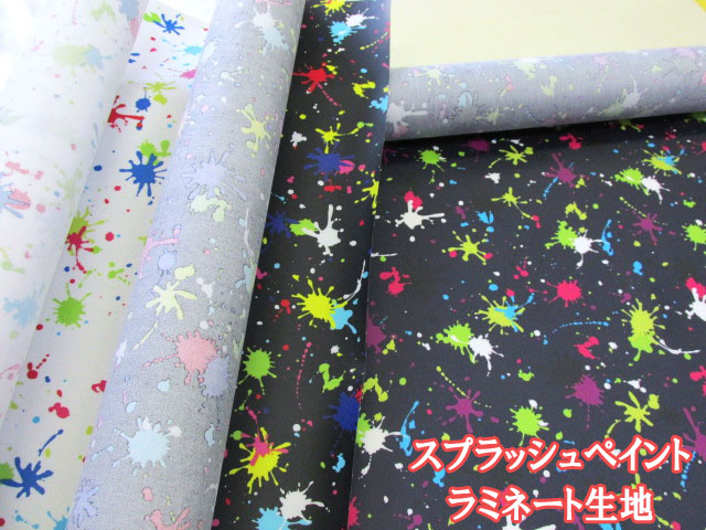 スプラッシュペイント ペンキ・インク柄 オックス生地 ラミネート つや消し