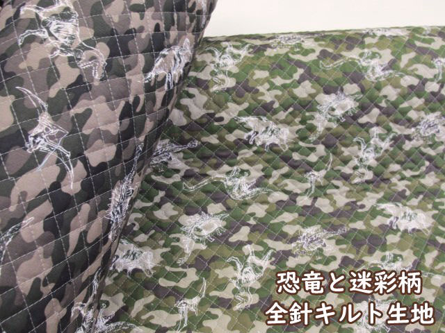 恐竜と迷彩柄 CBポプリン生地 全針キルト