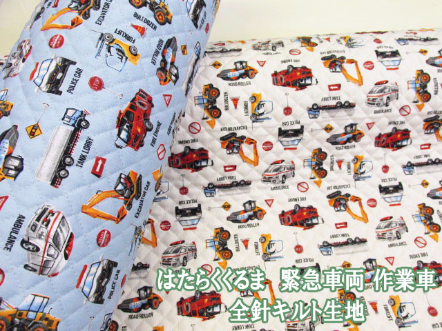 はたらくくるま 緊急車両・作業車 車柄 オックス生地 全針キルト