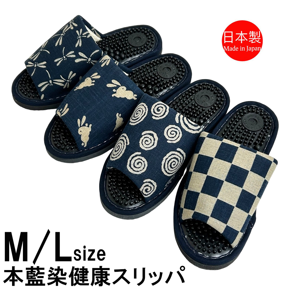 健康スリッパ 健康サンダル 日本製 本藍染 和柄 市松 渦 うさぎ トンボ レディース Mサイズ 〜24cm程度まで メンズ Lサイズ 〜27cm程度まで 足つぼ オフィス
