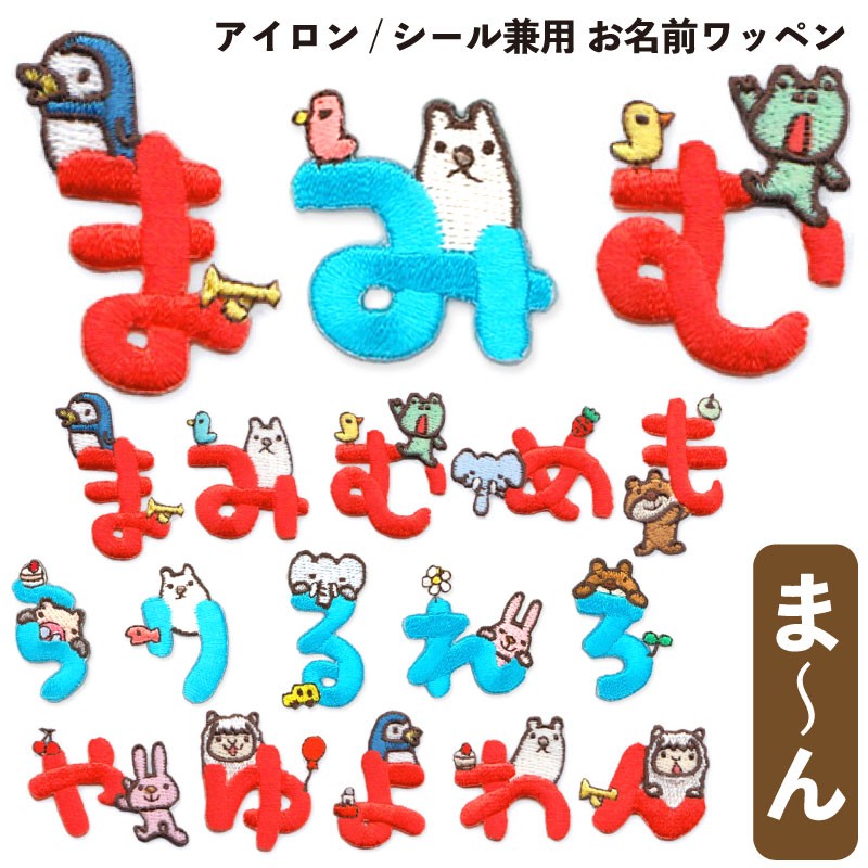 お名前付けに便利!シール・アイロン両用のひらがなワッペン☆動物たちがかわいいひらがなワッペン。