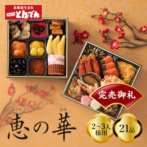 おせち料理2026『恵の華』【生おせち料理】★数量限定★ 盛付済み、冷蔵で配達、ふた開けてすぐに、お召し上がりいただけます。とんでん おせち