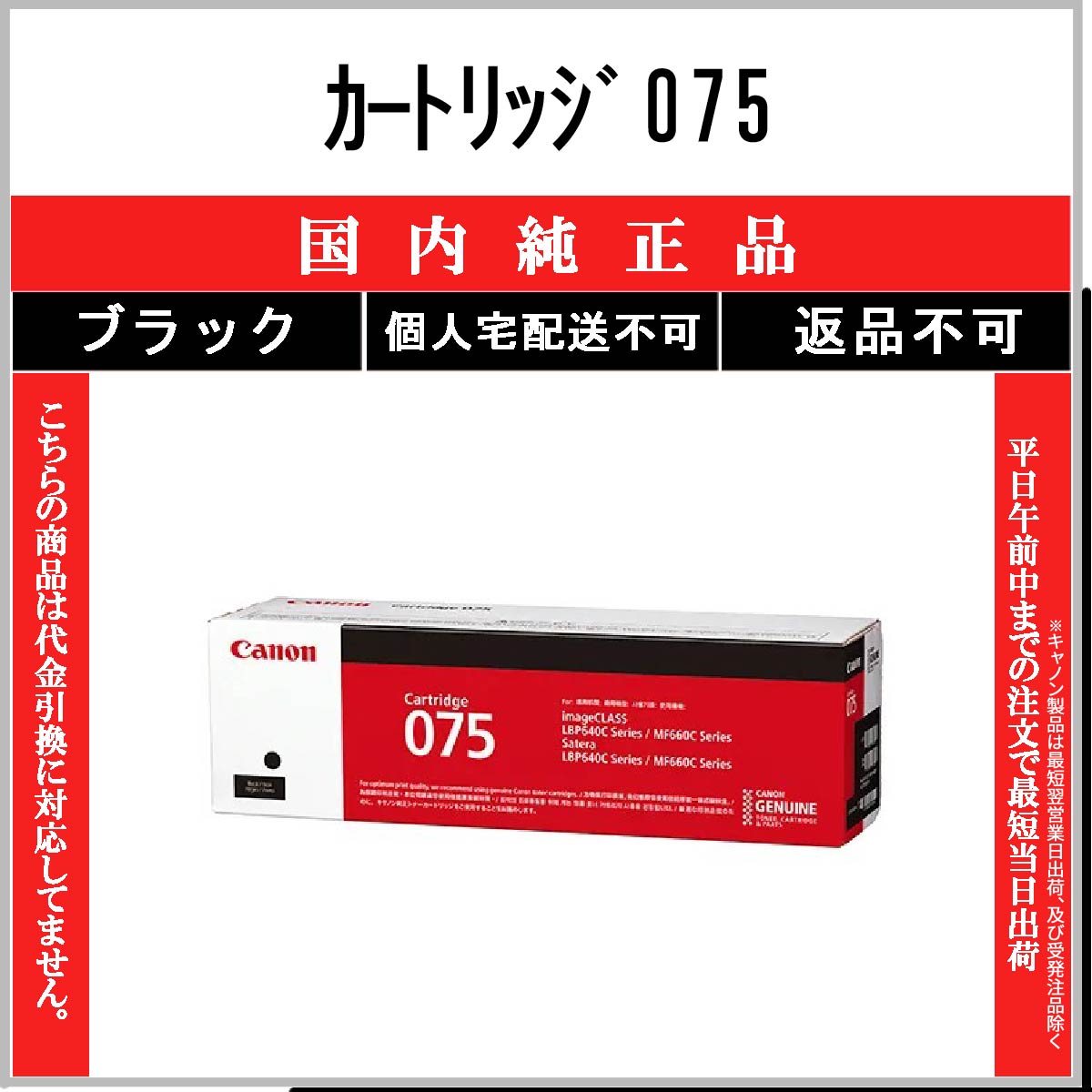 カートリッジ075 ブラック 純正品 CANON 在庫品 代引不可 個人宅配送不可 最短翌営業日発送 キャノン CRG-075
