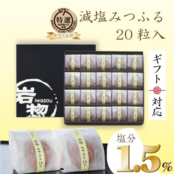 ギフト 梅干し 個包装 高級 南高梅 はちみつ 減塩 20粒入 塩分1.5% 岩惣 減塩みつふる 甘い 健康 食べ物 はちみつ梅 プレゼント母の日 2026