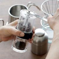 水洗いできるセラミックコーヒーミル分量の目安となるコーヒー豆の目盛り付き!お好みの豆を目盛りまで入れてあとはクルクル回すだけ。ミル部はセラミックで、金属臭がなくコーヒー本来の風味を損ないません。また摩耗しにくい為、使い始めの挽き具合が持続します。粗さ調節ネジでドリップ方式に合わせた粗さを選べます。セラミックミル部は取り外し、水洗いができます。目盛りは浅煎り・中深煎りと分かれています。