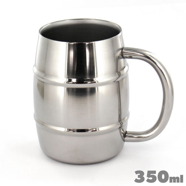 樽型 真空断熱ステンレスジョッキ 350mlほど良いサイズ感の樽型の真空断熱ステンレスジョッキです。