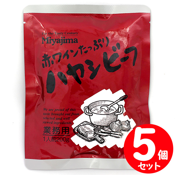 【セット】ミヤジマ 赤ワインたっぷり ハヤシビーフ 200g×5袋セット 業務用