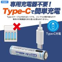 電池 充電 Type-C充電 リチウムイオン電池 単4形 4本