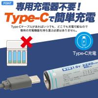 電池 充電 Type-C充電 リチウムイオン電池 単3形 4本
