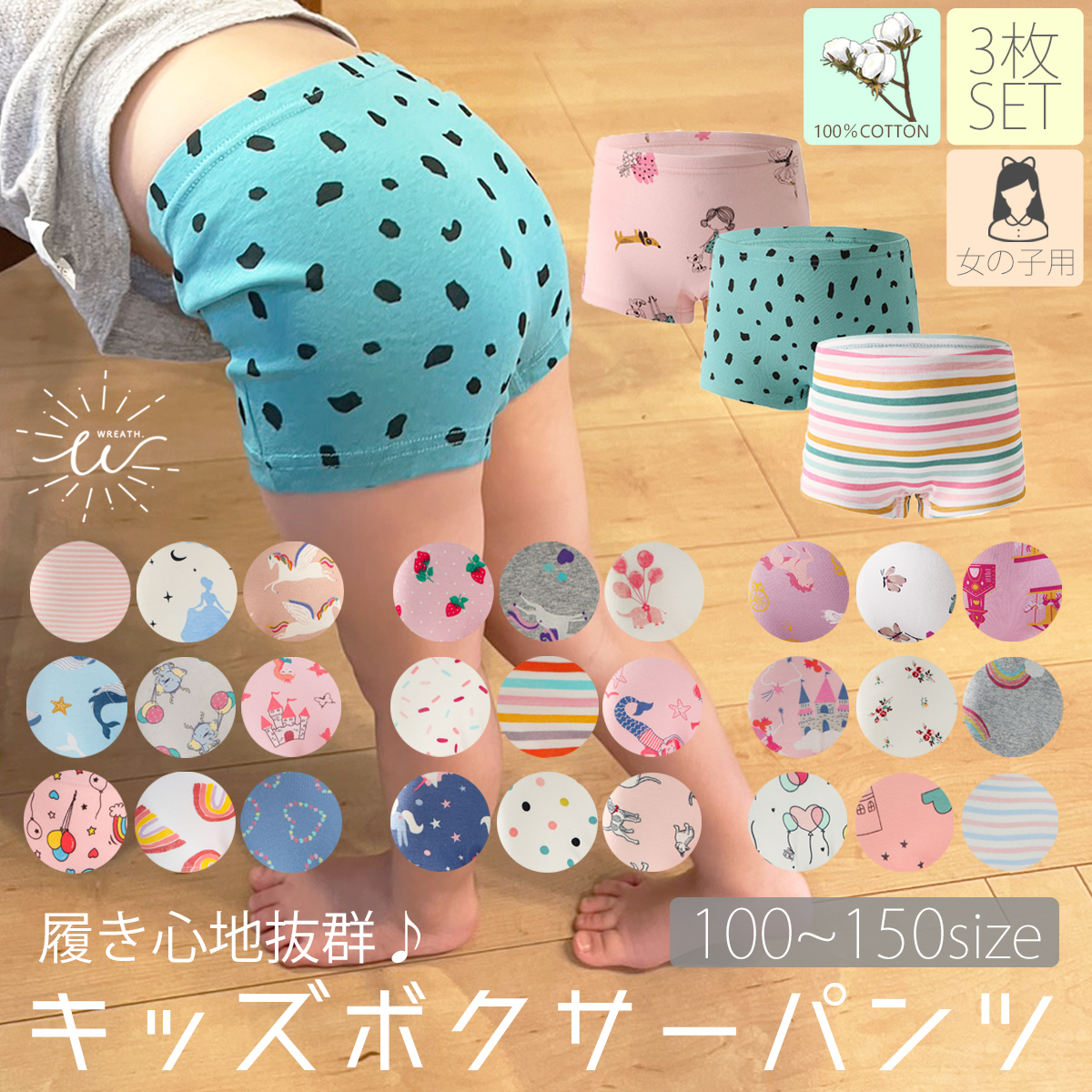 ショーツ 女の子 子供 女児 パンツ 下着 ショーツ 女子 3枚セット キッズ ボクサーパンツ インナー 肌着 綿100% 小学生 幼稚園 保育園 100 110 120 130