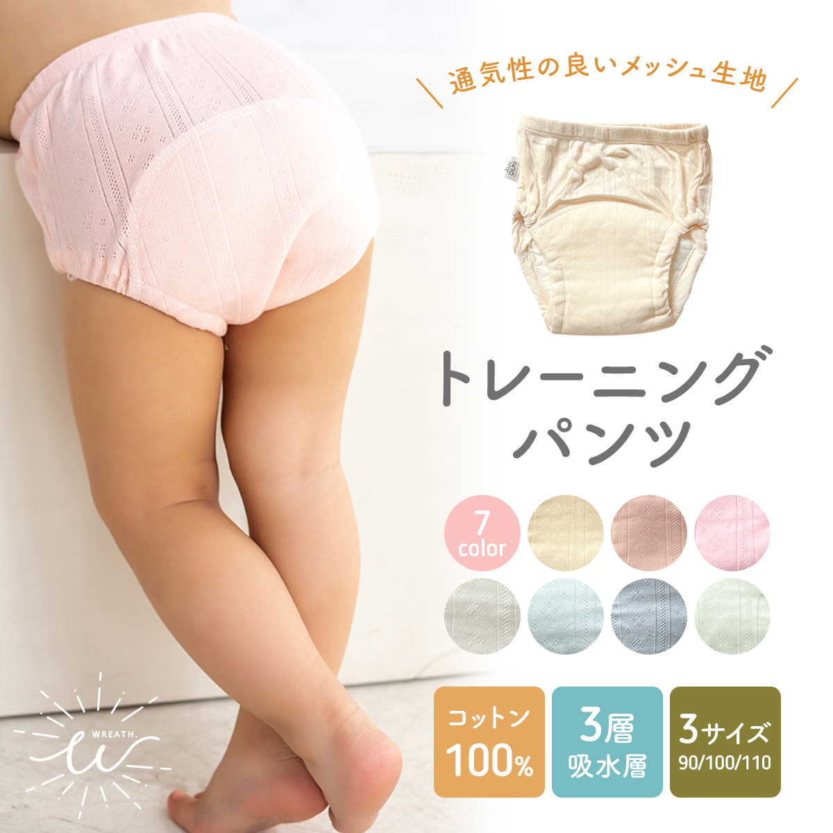 トレーニングパンツ 3層 子供 夏用 涼しい メッシュ生地 女の子 男の子 トレパン トイレトレーニング 綿100% シンプル 無地 下着 パンツ キッズ 90 100 110