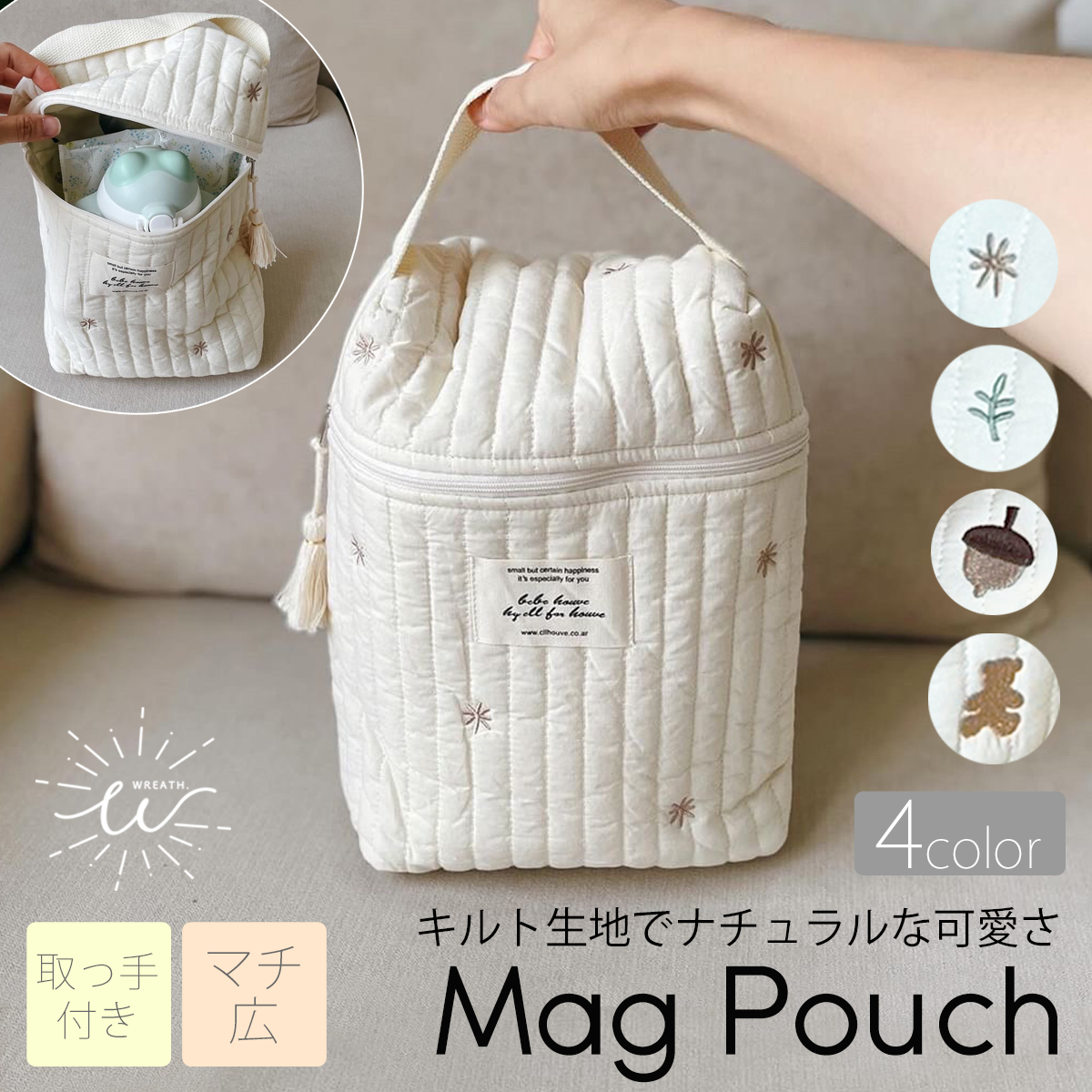 おむつポーチ マグポーチ 大容量 くま おしゃれ ヌビバッグ イブル 哺乳瓶 おしりふき ヌビ オムツポーチ オムツ入れ 大きめ マルチポーチ キルト かわいい