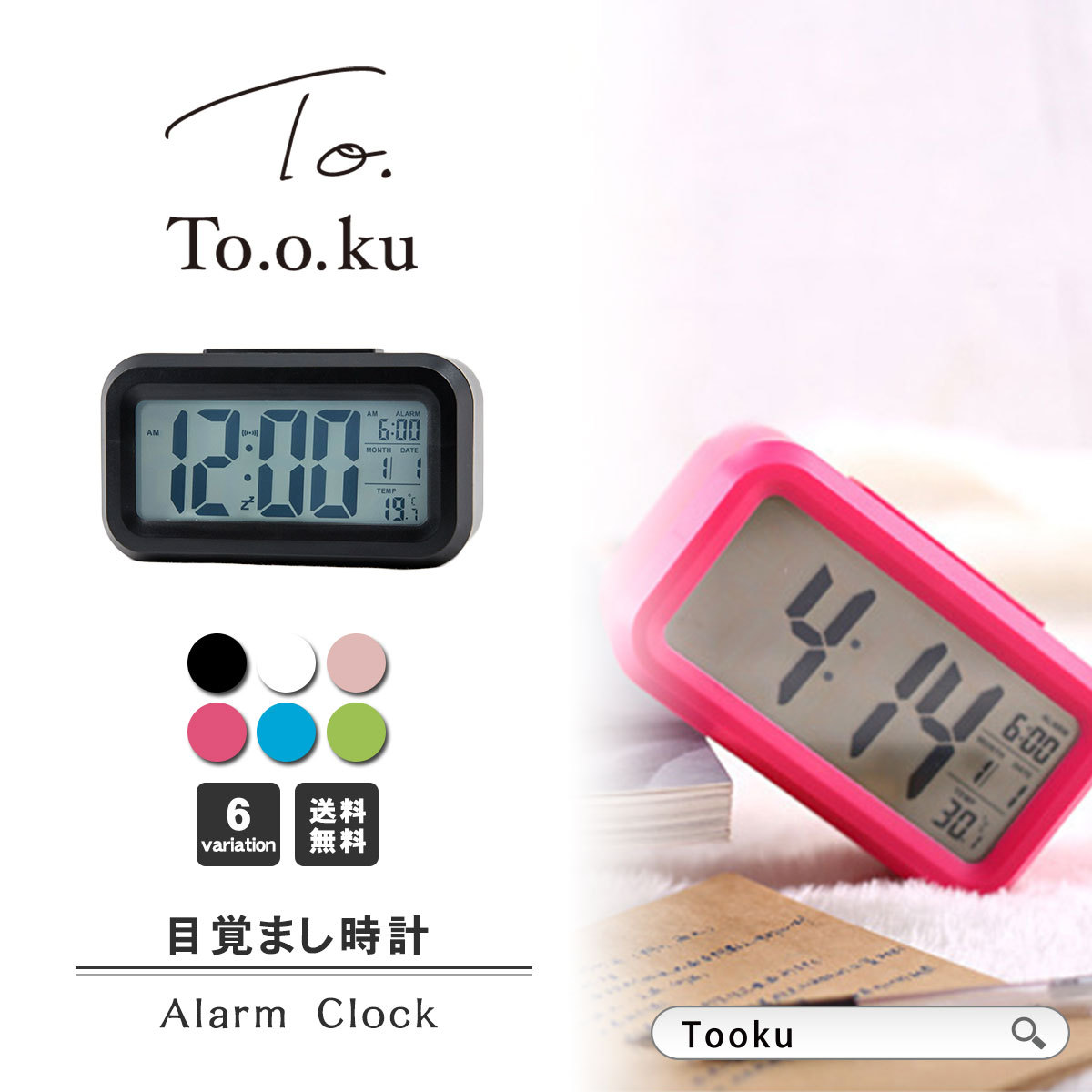目覚まし時計 デジタル バックライト付き クロック 見やすい シンプル カレンダー付き 温度計 アラーム 卓上 大音量 LED表示 かわいい ポイント消化 ギフト