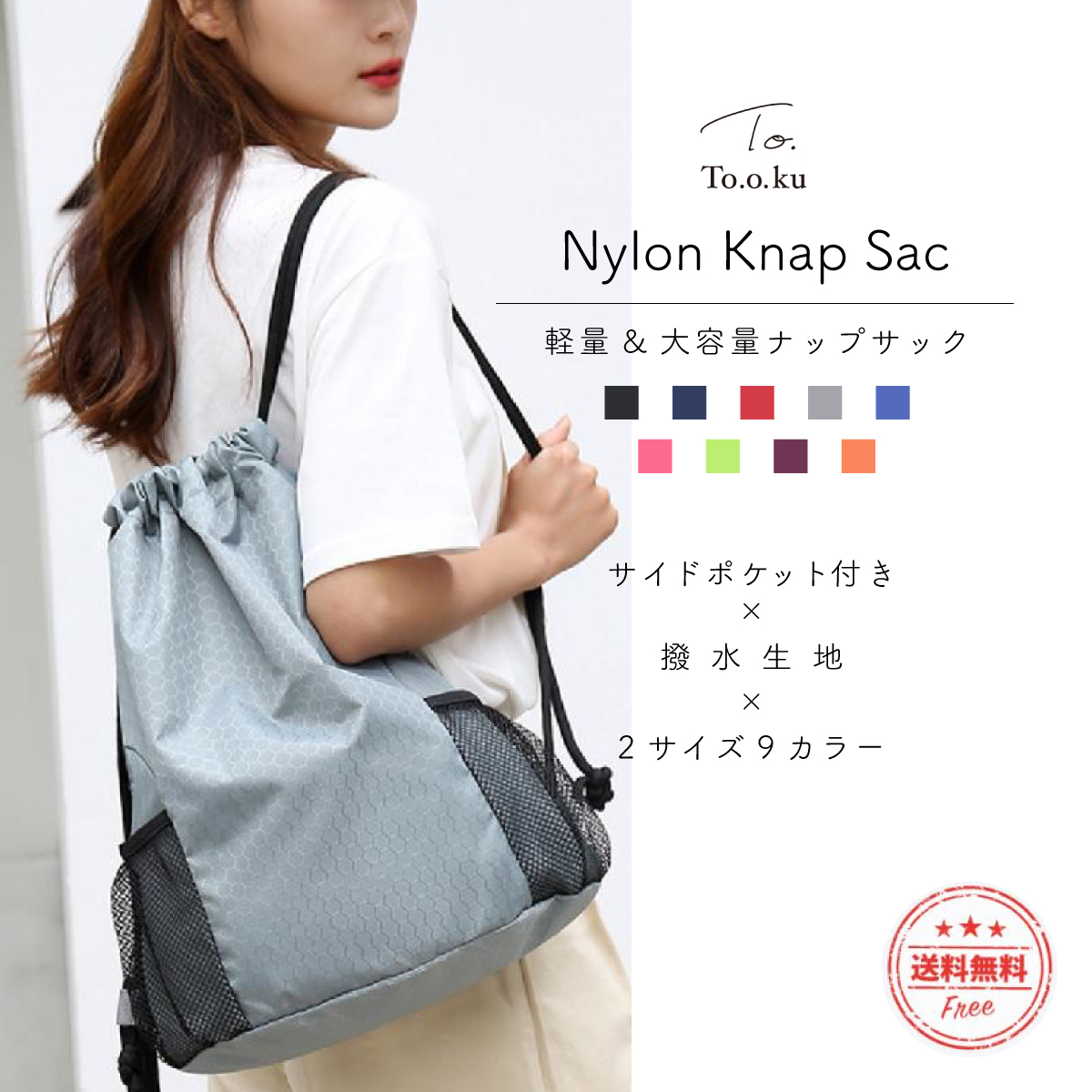 様々なシーンで活躍する軽量・撥水ナップサック。
