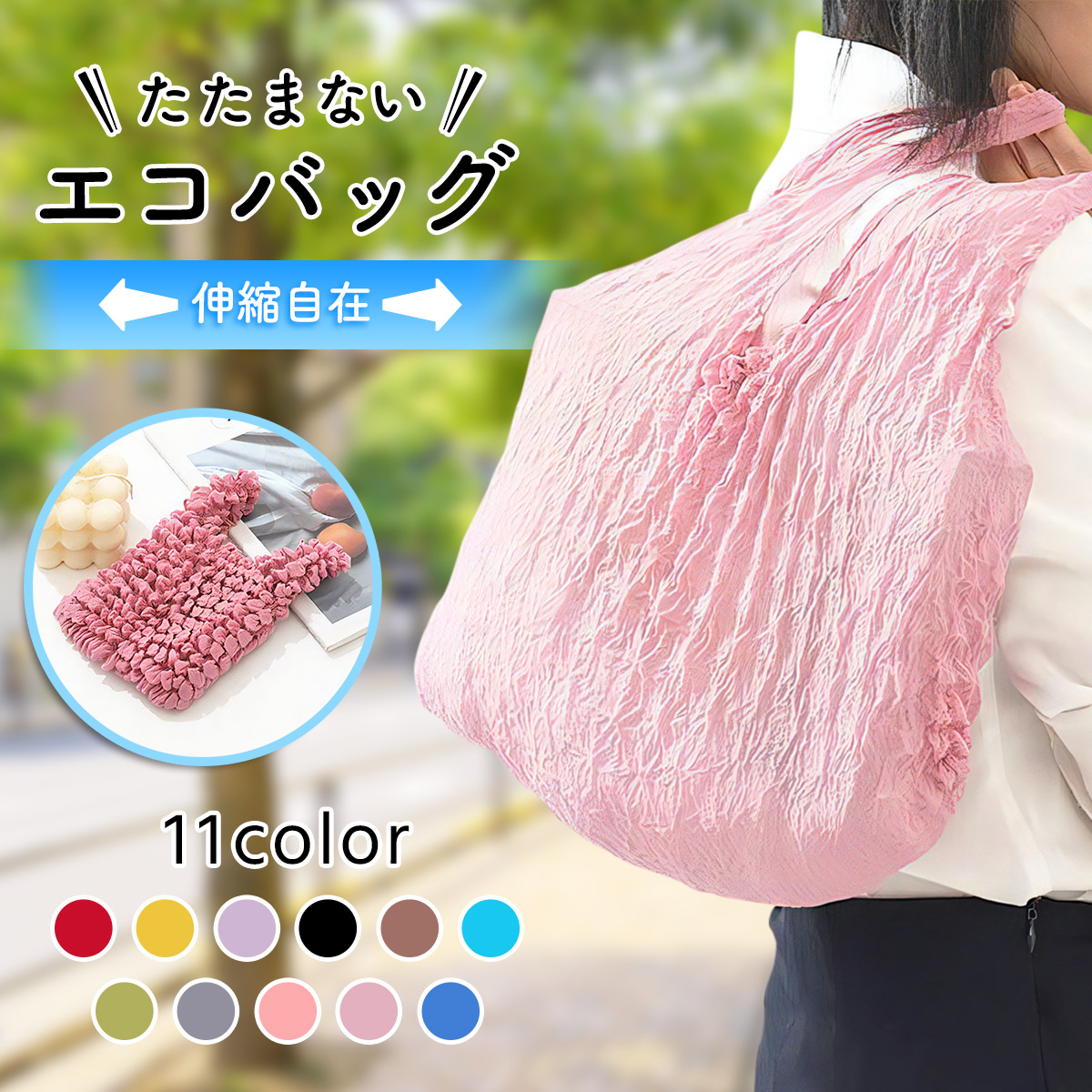 伸縮自在なたたまないエコバッグ
