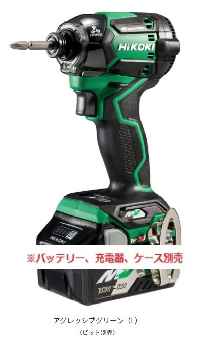 MV HiKOKI 36VインパクトドライバWH36DC(NN) アグレッシブグリーン(本体のみ) ※バッテリ、充電器、ケース別売 セットばらし品の為、化粧箱は付属しません。