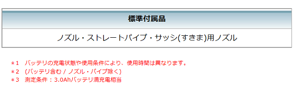 ※数値は参考値です。バッテリの充電状態や作業条件により異なります。