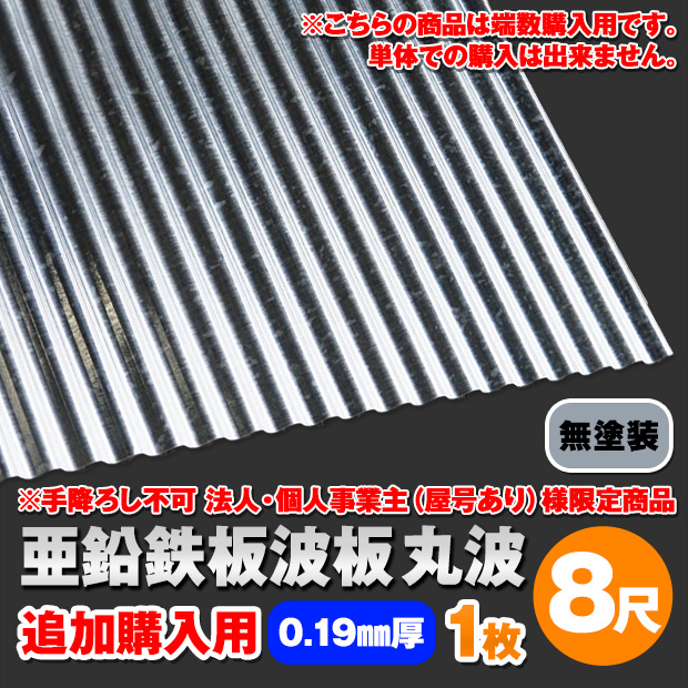 追加購入用 法人・個人事業主(屋号あり)様限定商品 亜鉛鉄板波板(丸波)無塗装 8尺 厚み:0.19mm 1枚 カラー:亜鉛(無塗装) ot_dk-am819-1s_tsuika