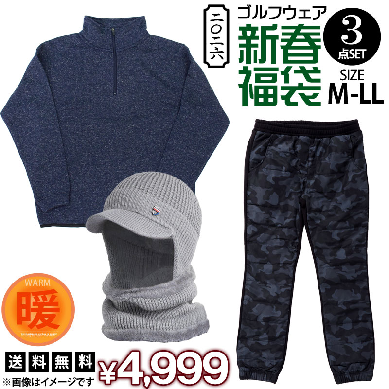 秋冬暖かいメンズゴルフウェア合計3点入り福袋。