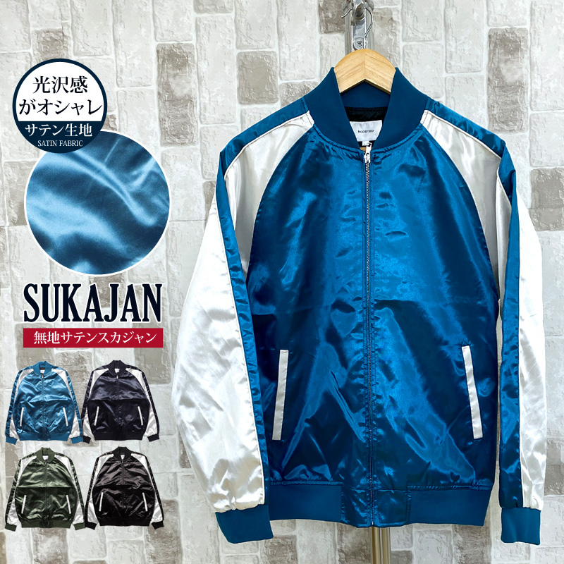 スカジャン メンズ 無地 配色切替 サテン生地 男女兼用 ストリート アウター ジャケット ライトアウター ブルゾン