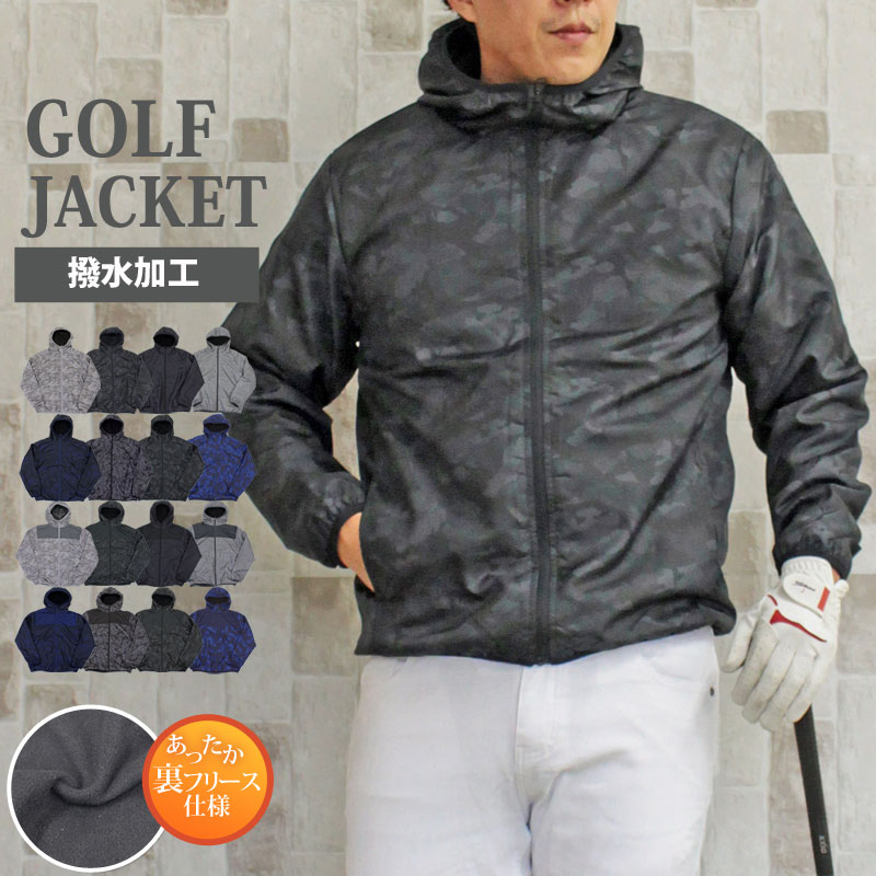 ゴルフジャケット メンズ ゴルフウェア 裏起毛フリース 撥水加工 アウター ブルゾン パーカー フード フルジップアップ スポーツウェア 暖かい 防寒 秋冬