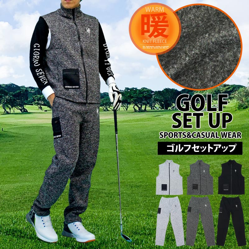 ゴルフウェア メンズ 上下セットアップ GIORNO SEVEN ジョルノセブン 裏起毛 ニットフリース ゴルフパンツ ジップアップベスト 秋冬